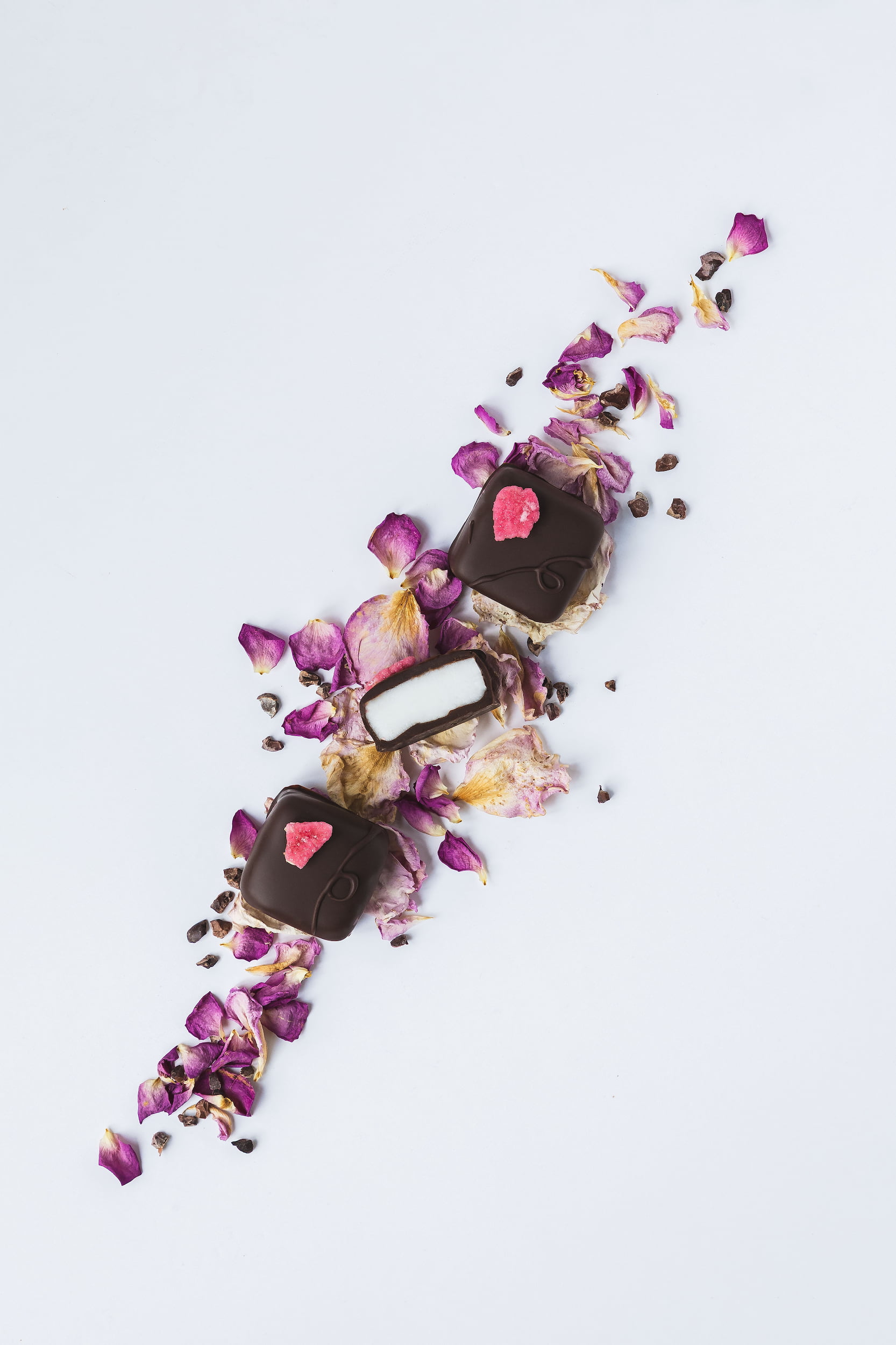 He wanted something different: clean, fresh imagery that not only showed his chocolates clearly, but also told a story – highlighting the textures, colours and character of each flavour.